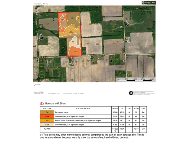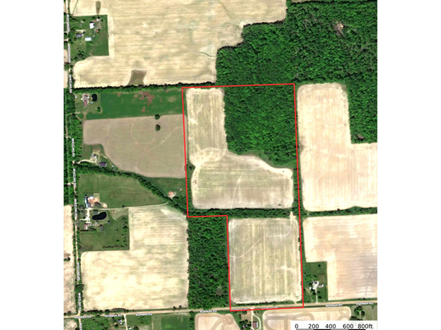 Nice 67+ acre combination piece of farm ground, woods, and fence rows. This productive farmland is showing a 70 NCCPI number with Brookstone, Conover, and Blount loam soils. There is a county drain that crosses the acreage from east to west and there is a crossing to get over the drain. Approximately 46 acres of tillable ground. Farmer has farming rights and any crops currently on the land for 2024.