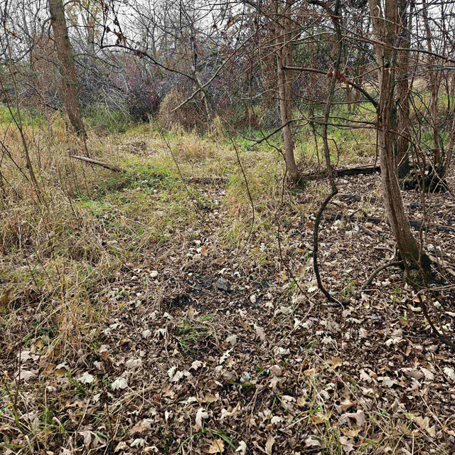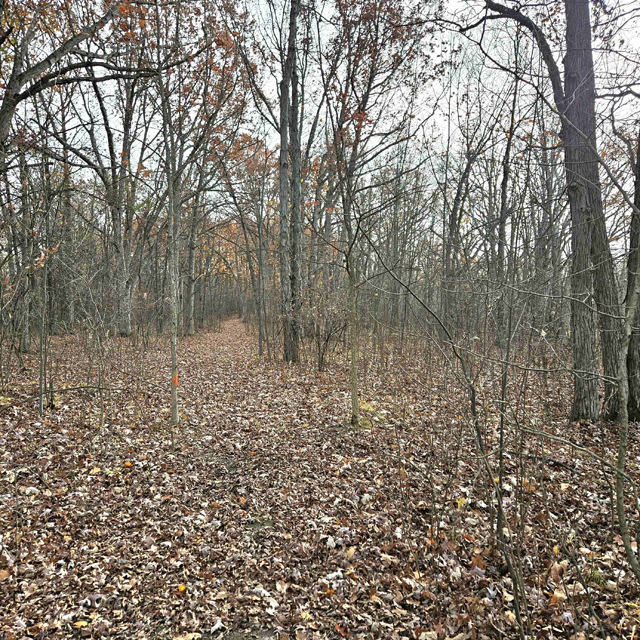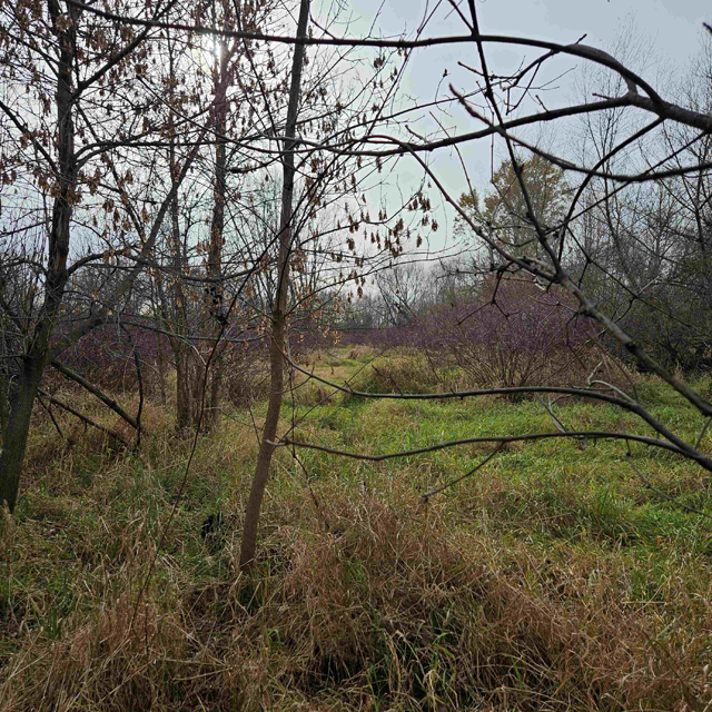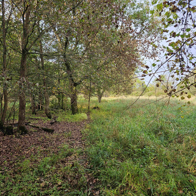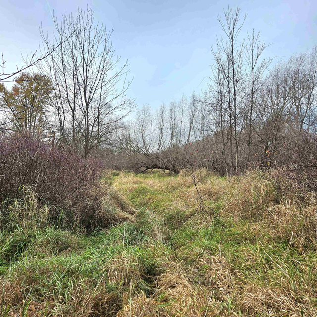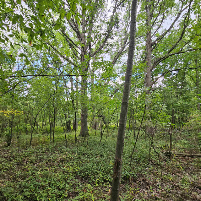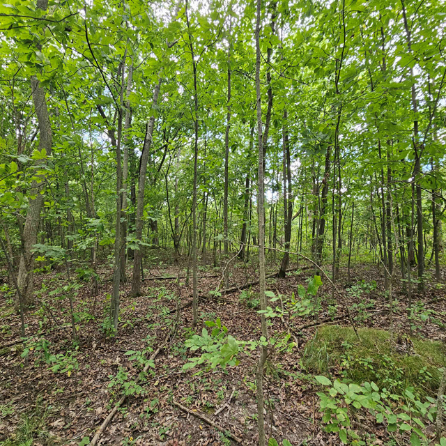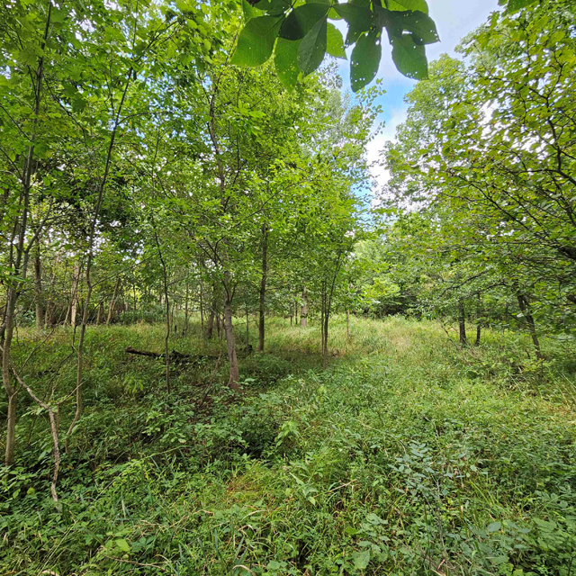 The land here is split between high wooded forest and thick lowlands. The higher ground is mostly on the eastern side of the acreage. This area is fully wooded with oak, hickory, poplar, maple and some scattered white pines. Some truly large oaks can be found in this portion. The west and south part of this parcel is lower ground. This area is a mix of dense bushes, scattered willows, cottonwood, maple and other soft wood trees. Plenty of different grass are found throughout the south and west sides.