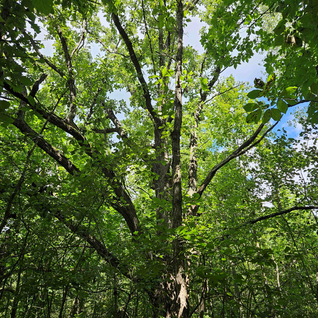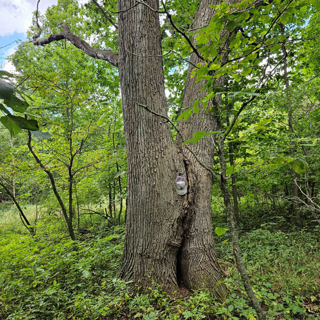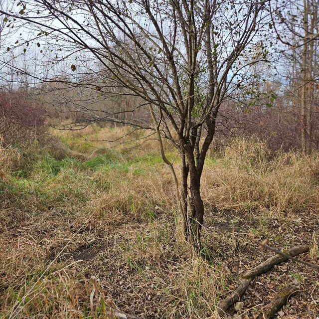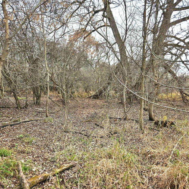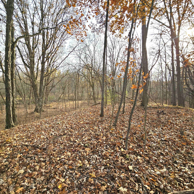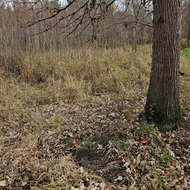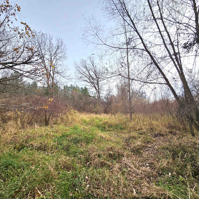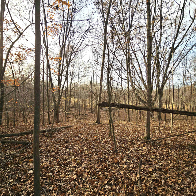 The land here is split between high wooded forest and thick lowlands. The higher ground is mostly on the eastern side of the acreage. This area is fully wooded with oak, hickory, poplar, maple and some scattered white pines. Some truly large oaks can be found in this portion. The west and south part of this parcel is lower ground. This area is a mix of dense bushes, scattered willows, cottonwood, maple and other soft wood trees. Plenty of different grass are found throughout the south and west sides.